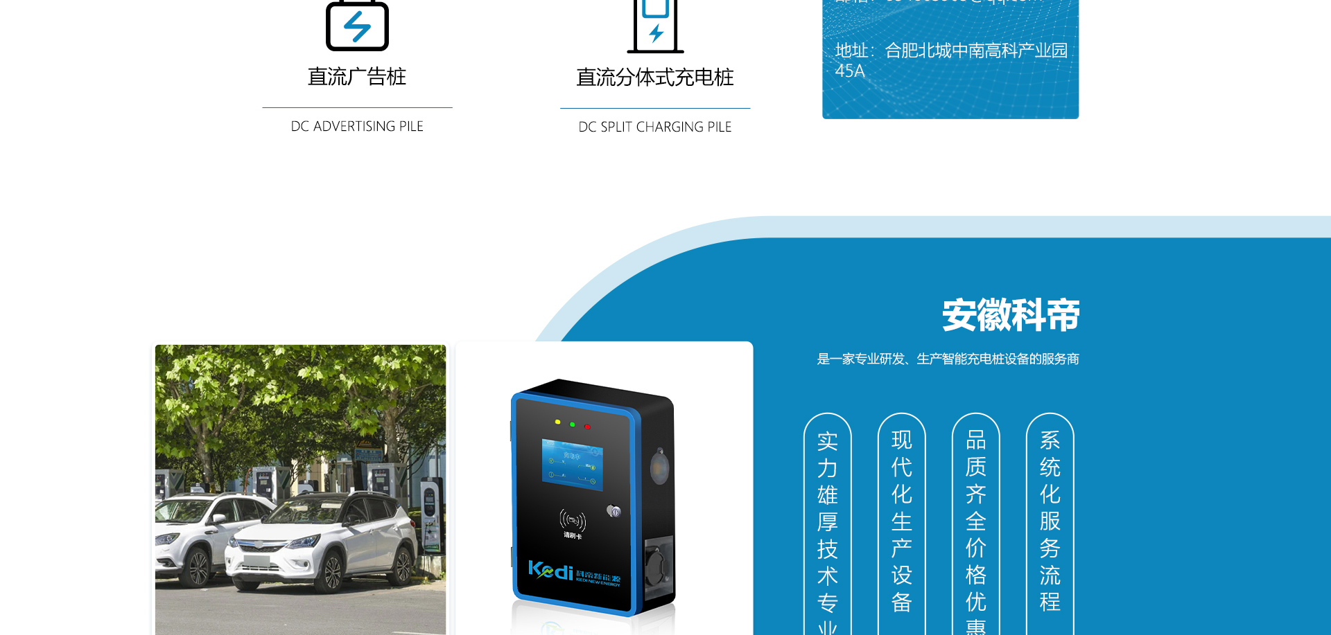 關(guān)于我們安徽科帝新能源科技有限公司坐落于安徽省會(huì)-合肥,是一家研發(fā)、生產(chǎn)智能充電樁設(shè)備,汽車充電站后臺(tái)監(jiān)控管理系統(tǒng)和生產(chǎn)高壓開關(guān)設(shè)備的企業(yè).由專門的研發(fā)團(tuán)隊(duì)、管理團(tuán)隊(duì)按照現(xiàn)代化企業(yè)制度規(guī)范設(shè)立的有限責(zé)任公司。致力于為能源智能、安全的應(yīng)用和節(jié)能減排提供整體的技術(shù)與產(chǎn)品解決方案??频奂邪l(fā)、設(shè)計(jì)、生產(chǎn)、銷售以及服務(wù)于一體,在電動(dòng)汽車充電方案,充電設(shè)施建設(shè)和城市配電方面擁有廣泛的技術(shù)研究及經(jīng)驗(yàn)積累,為客戶提供安全、智能的充電設(shè)備及充電運(yùn)營(yíng)站建設(shè)一體化解決方案。并堅(jiān)持以人為本、質(zhì)量為先、顧客至上、不斷創(chuàng)新”的企業(yè)理念,為能源行業(yè)的發(fā)展、節(jié)能減排做出重大的貢獻(xiàn)。公司擁有豐富的產(chǎn)品種類,目前科帝已研發(fā)生產(chǎn)了三十多種產(chǎn)品,充電設(shè)備有直流一體式充電樁、直流分體式充電樁、直流廣告樁、交流廣告樁、廣告一體樁、壁掛交直流樁;等多種充電設(shè)備;每一款產(chǎn)品都是精心打造,力求為客戶提供優(yōu)越的用戶體驗(yàn)。展望未來(lái)科帝將通過(guò)持續(xù)的自...